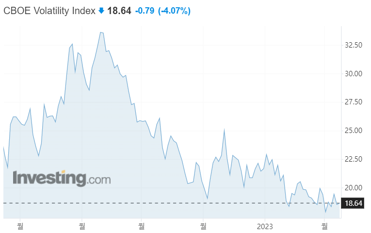 S&P 500 옵션에 기반한 변동성 지수인데 정상적일 때 평균치가 19.5 정도 되는데